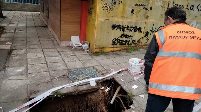 Τραυματισμένος στο νοσοκομείο Παπαγεωργίου της Θεσσαλονίκης, με κάταγμα ισχίου, μεταφέρθηκε το πρωί εργαζόμενος του τμήματος Καθαριότητας του δήμου Παύλου Μελά, όταν υποχώρησαν πλάκες πεζοδρομίου στο προκήπιο οικοδομής, στη διασταύρωση των οδών Φιλώτα 14 και Χάνι Γραβιάς, στην Άνω Ηλιούπολη, σε σημείο που υπήρχε παλιός βόθρος.