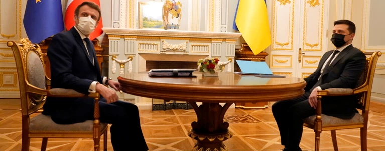 Ο Εμανουέλ Μακρόν προσπαθεί "μάταια" να κάνει διάλογο με τον Ρώσο ομόλογό του Βλαντίμιρ Πούτιν, εκτίμησε επίσης ο Ουκρανός πρόεδρος Βολοντίμιρ Ζελένσκι κρίνοντας ότι "δεν είναι σωστό" ο Γάλλος πρόεδρος να είναι έτοιμος, σύμφωνα με τον Ζελένσκι, να "κάνει διπλωματικές παραχωρήσεις" στη Ρωσία.