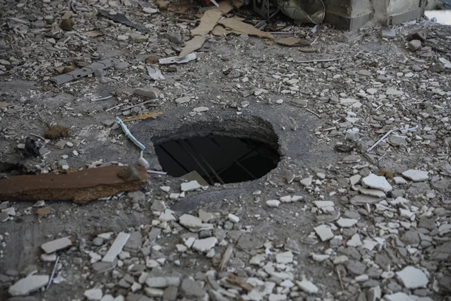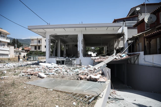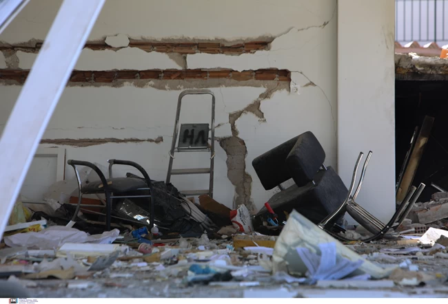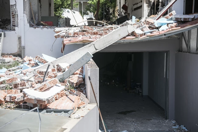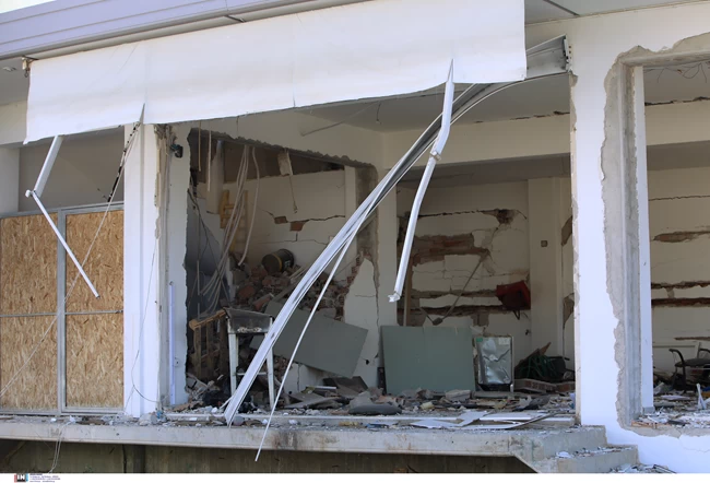 Είναι χαρακτηριστικό ότι δημιουργήθηκε κρατήρας μέσα στο κτίριο.