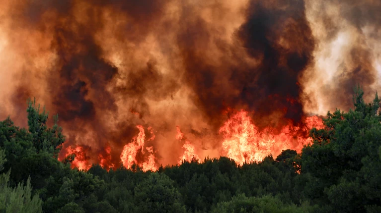 Φωτιά από άγνωστη αιτία, εκδηλώθηκε στις 7 μ.μ σε δασική περιοχή κοντά στο χωριό Πλατάνια της Ρόδου.