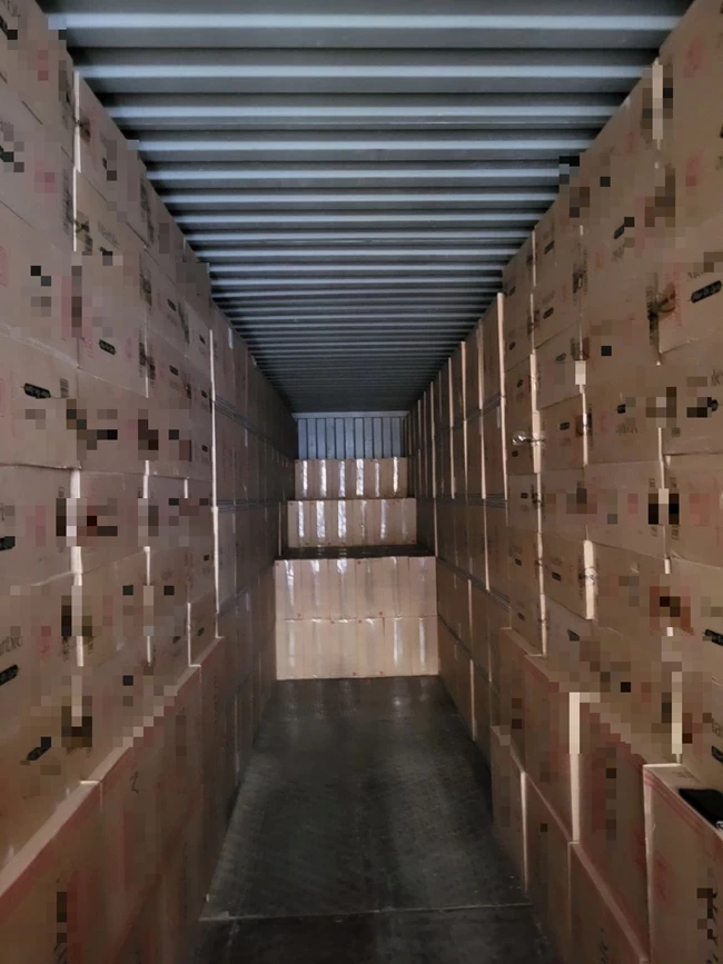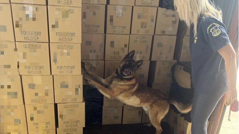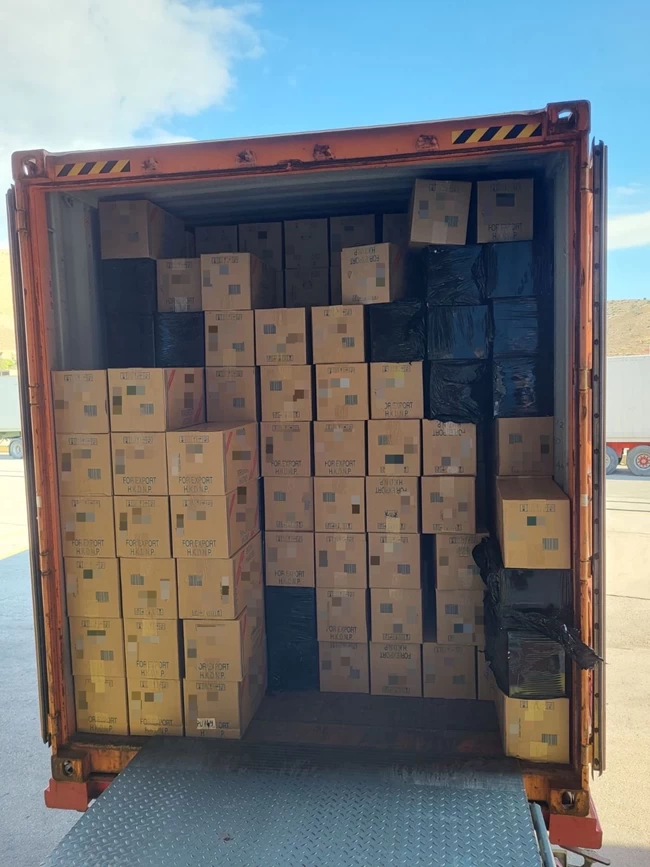 Πρωινές ώρες σήμερα και κατόπιν ένδειξης σκύλου ανίχνευσης καπνικών προϊόντων Κ9, στελέχη της Διεύθυνσης Δίωξης Ναρκωτικών και τελωνειακοί υπάλληλοι προέβησαν στην αποσφράγιση και στον καθολικό έλεγχο του φορτίου, όπου βρέθηκαν και κατασχέθηκαν συνολικά 548.000 πακέτα τσιγάρων με είκοσι τσιγάρα έκαστο, που αντιστοιχούν σε 10.960.000 τσιγάρα.