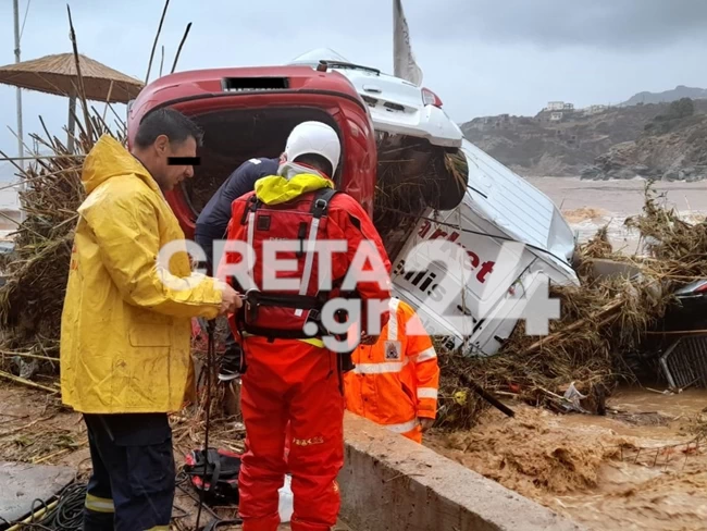 Σύμφωνα με τον αντιπεριφερειάρχη Ηρακλείου Νίκο Συριγωνάκη ο άνδρας εντοπίστηκε από δύτες εκτός του οχήματος στο οποίο βρισκόταν νωρίτερα όταν τον παρέσυρε χείμαρρος.