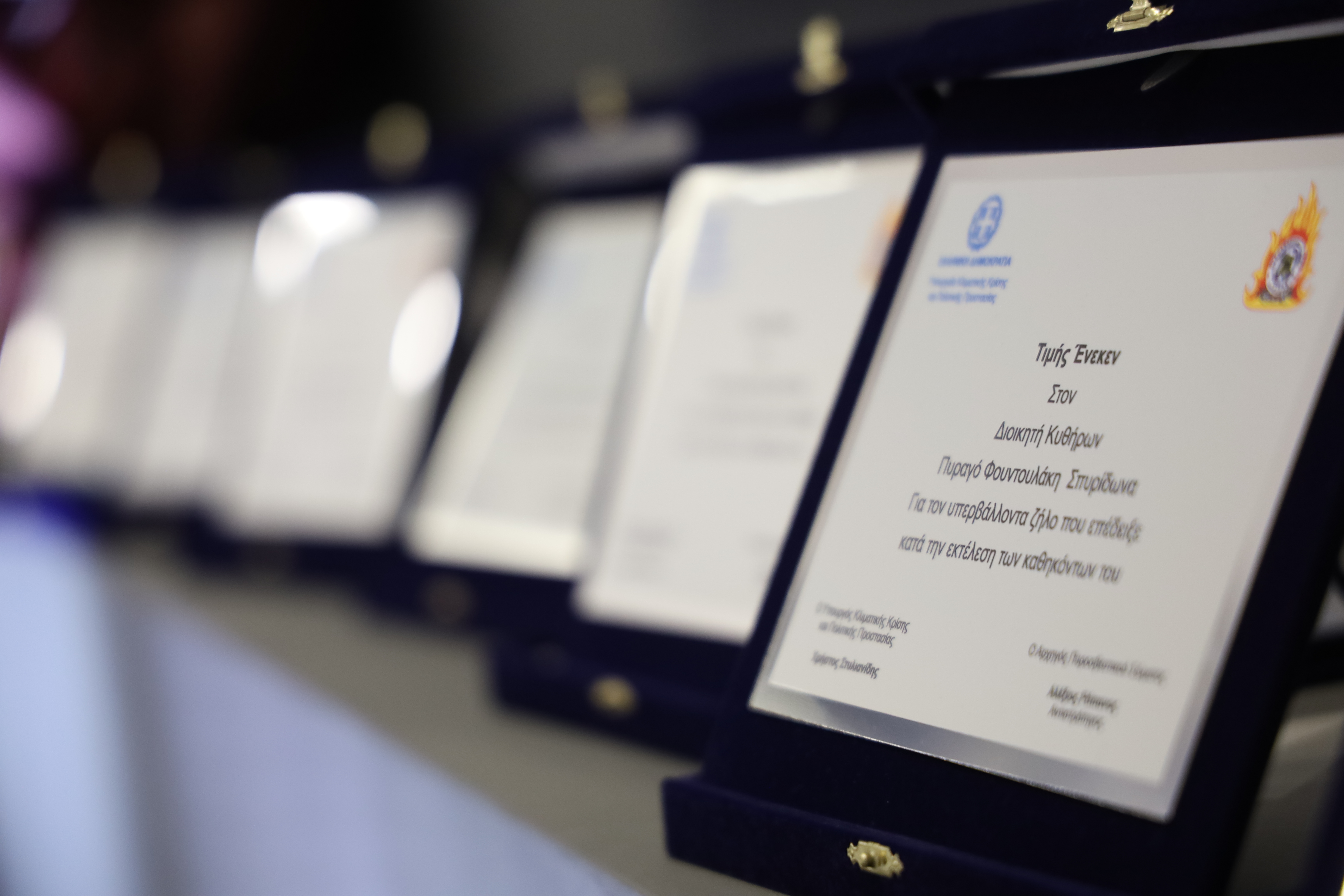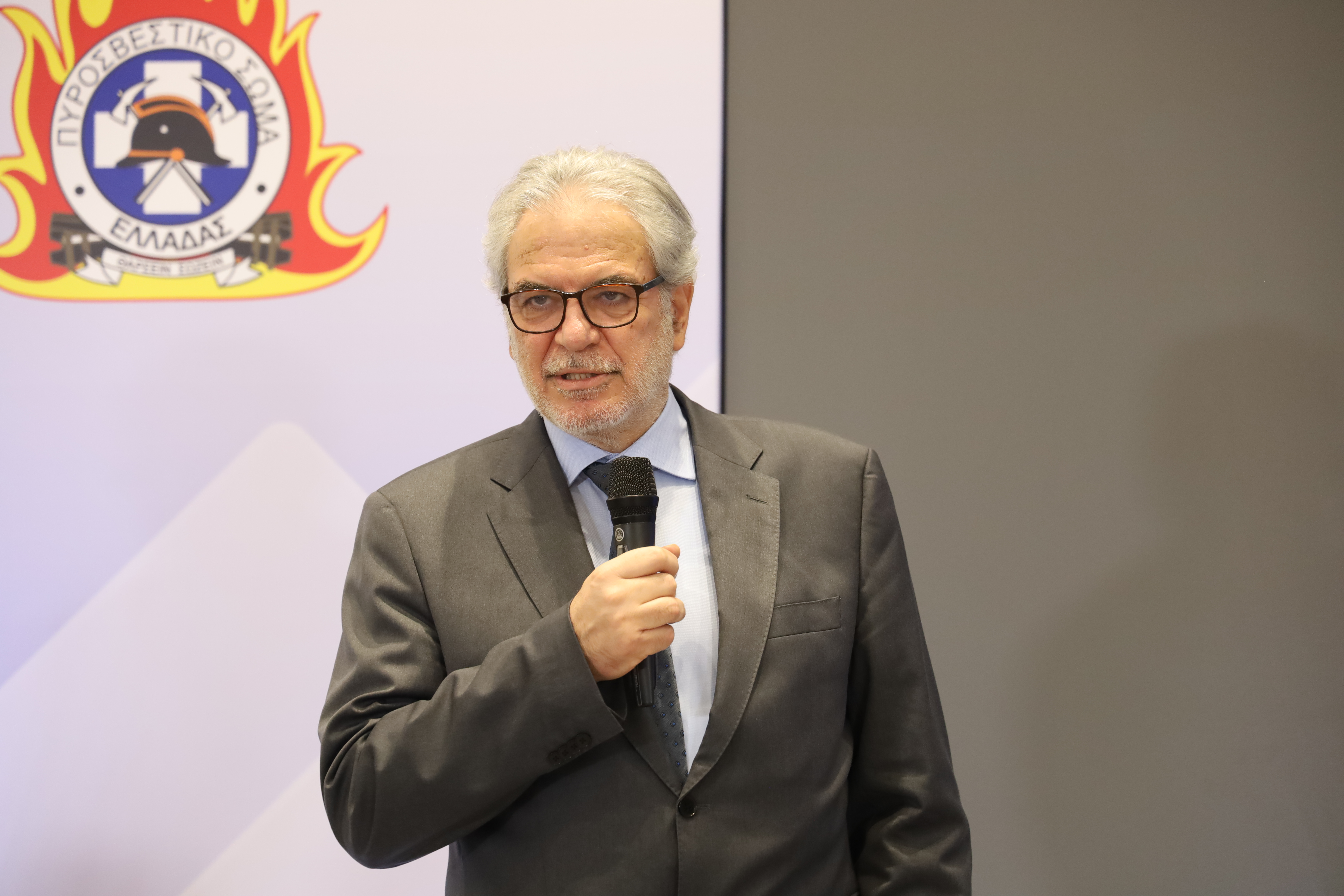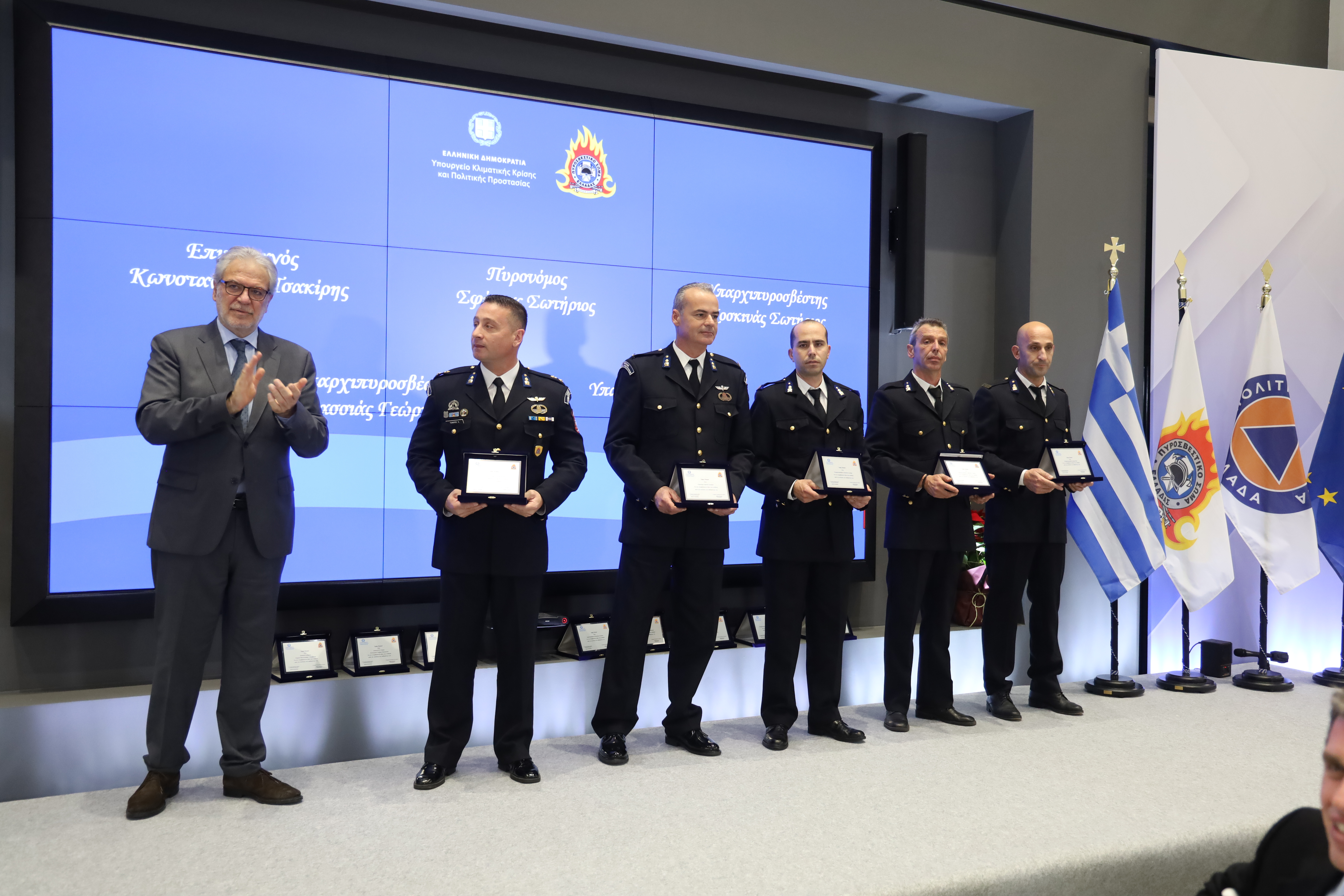 Ο Υπουργός Κλιματικής Κρίσης και Πολιτικής Προστασίας Χρήστος Στυλιανίδης, παρέστη ως εκπρόσωπος του Πρωθυπουργού, απηύθηνε χαιρετισμό και βράβευσε τους πυροσβέστες για εξαίρετες πράξεις