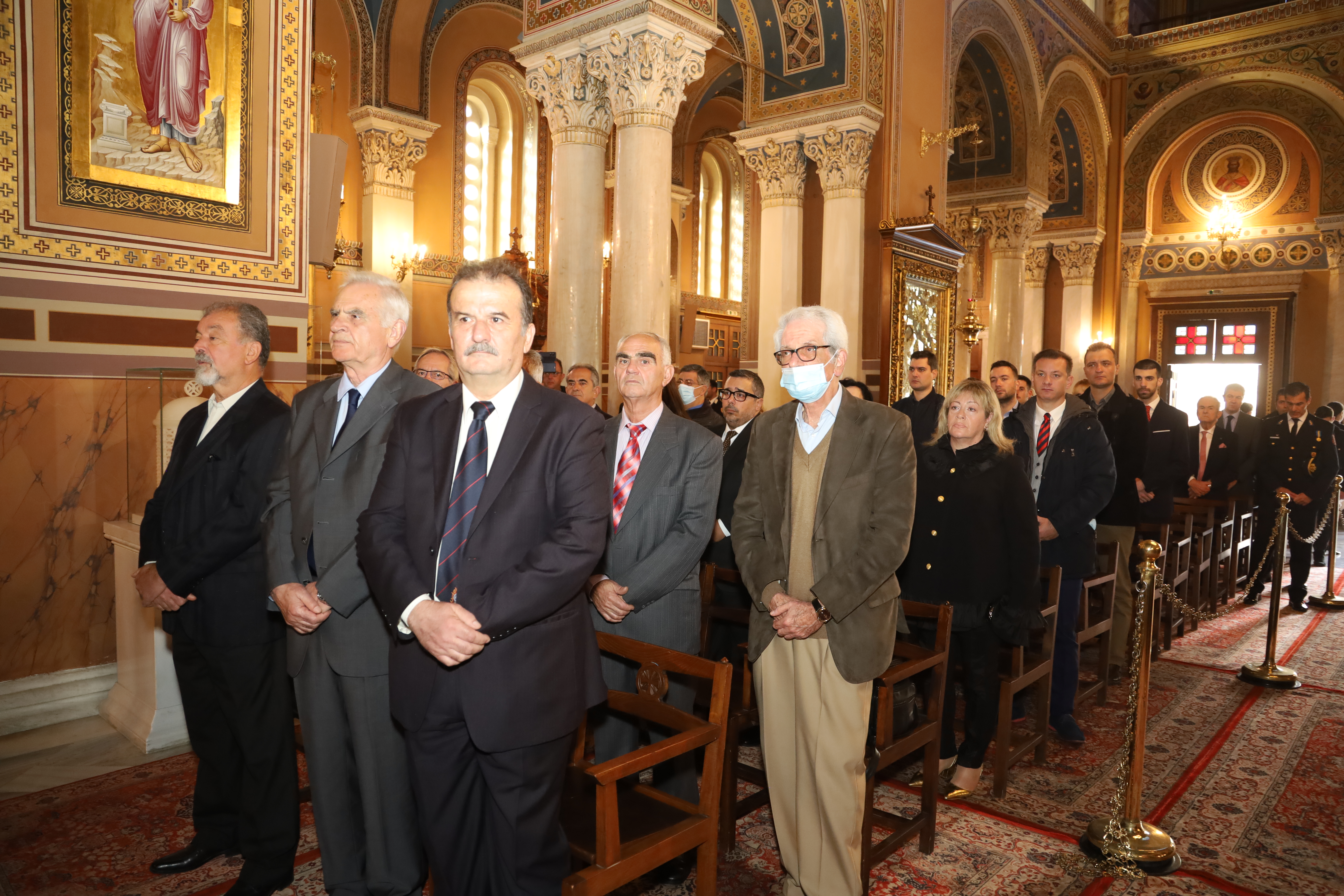 Στον Καθεδρικό Ιερό Ναό Αθηνών τελέστηκε Δοξολογία στην οποία χοροστάτησε ο Θεοφιλέστατος κ.κ. Χρυσόστομος Επίσκοπος Ευρίπου, ενώ τιμές αποδόθηκαν από διμοιρία Δοκίμων Ανθυποπυραγών και τη Μουσική Μπάντα του Σώματος.