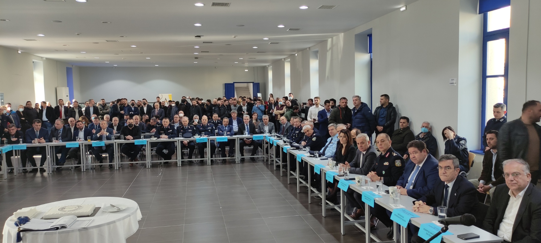 Ο Πρόεδρος της Ένωσης κ. ΠΑΚΟΣ Δημοσθένης ευχήθηκε καλή χρονιά με υγεία, τύχη και ευτυχία, ενώ αφιέρωσε το πρώτο κομμάτι της πίτας σε όλους τους αστυνομικούς οι οποίοι εργάζονται νυχθημερόν για να αισθάνονται άπαντες ασφαλείς. Κλείνοντας, ενώπιον των παρευρισκόμενων τόνισε ότι το 2023 είναι η χρονιά εντός της οποίας η Πολιτεία επιβάλλεται να πραγματοποιήσει την δέσμευσή της έναντι στους Έλληνες αστυνομικούς, ήτοι την αναγνώριση της επικινδυνότητας της εργασίας μας. Την πρωτοχρονιάτικη πίτα ευλόγησε ο πανοσιολογιότατος πατέρας του Σώματος Προϊστάμενος της Θρησκευτικής Υπηρεσίας Α/Β΄ Αρχιμανδρίτης κ. ΚΟΥΡΤΕΣΗΣ Αλέξιος.