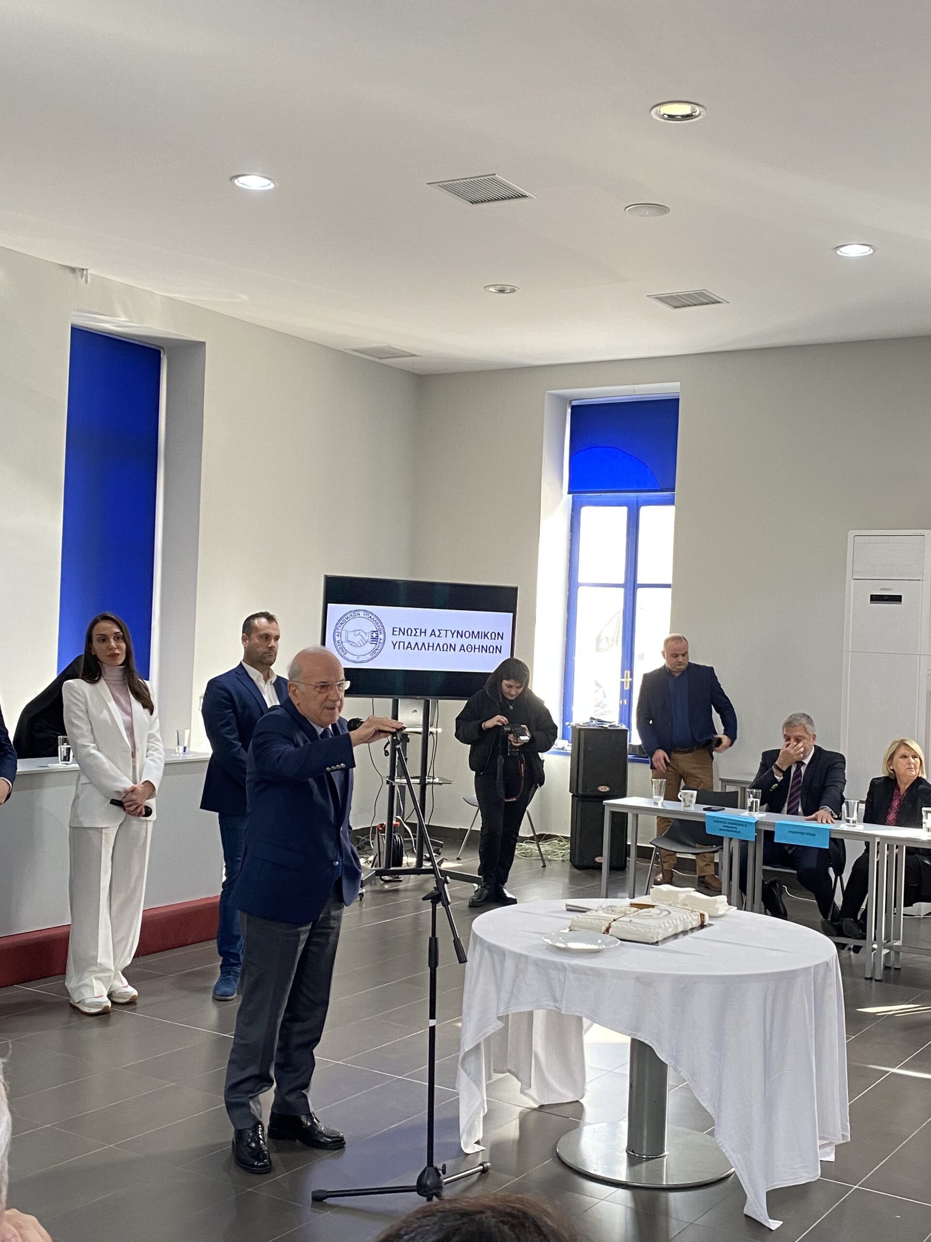 Εν μέσω μιας μεγαλειώδους εκδήλωσης, η Ένωση Αστυνομικών Υπαλλήλων Αθηνών έκοψε την πρωτοχρονιάτικη πίτα της την Τετάρτη 18 Ιανουαρίου 2023 στην αίθουσα εκδηλώσεων του Κέντρου Μελετών Ασφάλειας (ΚΕ.ΜΕ.Α.) στην Πρώην Σχολή Αξιωματικών ΕΛ.ΑΣ.