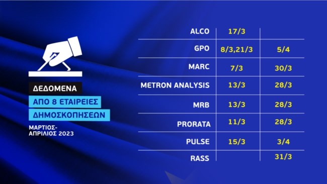 Πρόκειται για δεδομένα που έχουν συγκεντρωθεί από οκτώ εταιρείες δημοσκοπήσεων.