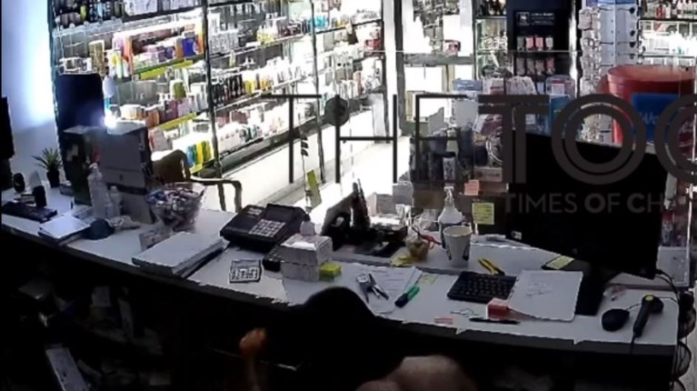 Ειδικότερα, όπως φαίνεται σε βίντεο-ντοκουμέντο, ο άνδρας είναι ημίγυμνος, έχοντας καλυμμένο το πρόσωπο του, καταφέρνει να εισβάλει στο φαρμακείο που βρίσκεται επί της Κύπρου στην Κυψέλη, κάνοντας ριφιφί από τοίχο εγκαταλειμμένου σπιτιού.