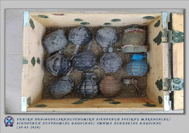 -11- χειροβομβίδες, εκ των οποίων -10- αμυντικού τύπου και -1- εκπαιδευτική,