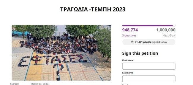 Ξεπέρασε τις 948.000 το ψήφισμα για τα Τέμπη