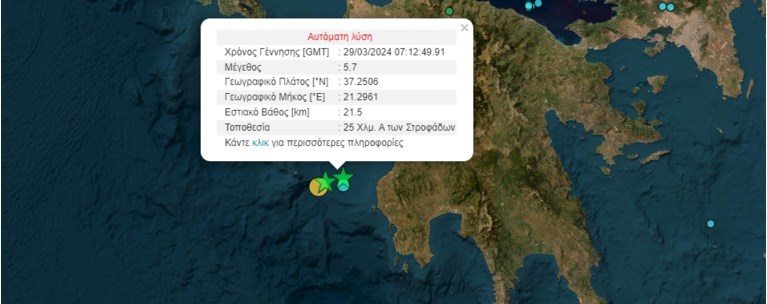 Σύμφωνα με την αυτόματη λύση του Γεωδυναμικού Ινστιτούτου του Εθνικού Αστεροσκοπείου Αθηνών, το επίκεντρο των σεισμών εντοπίστηκε 14 και 25 χιλιόμετρα ανατολικά των Στροφάδων.