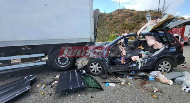 Στο ρεύμα προς Αθήνα αυτοκίνητο προσέκρουσε με σφοδρότητα σε παρκαρισμένο φορτηγό στο Σταθμό Εξυπηρέτησης Αυτοκινητιστών, με αποτέλεσμα να χάσουν τη ζωή τους οι δύο επιβάτες του ΙΧ.