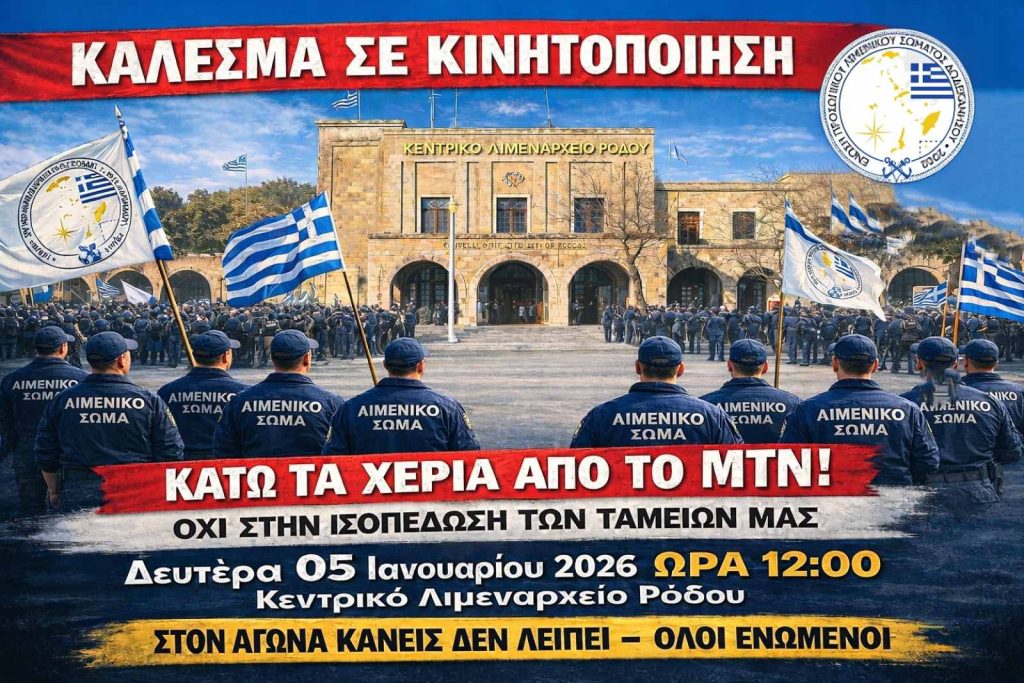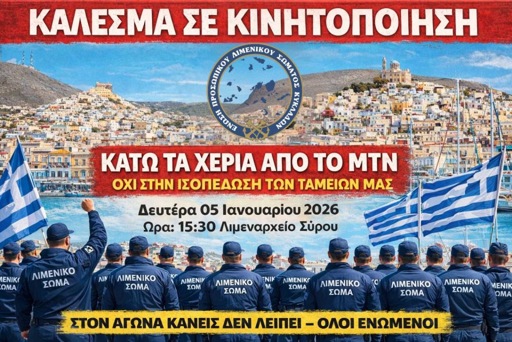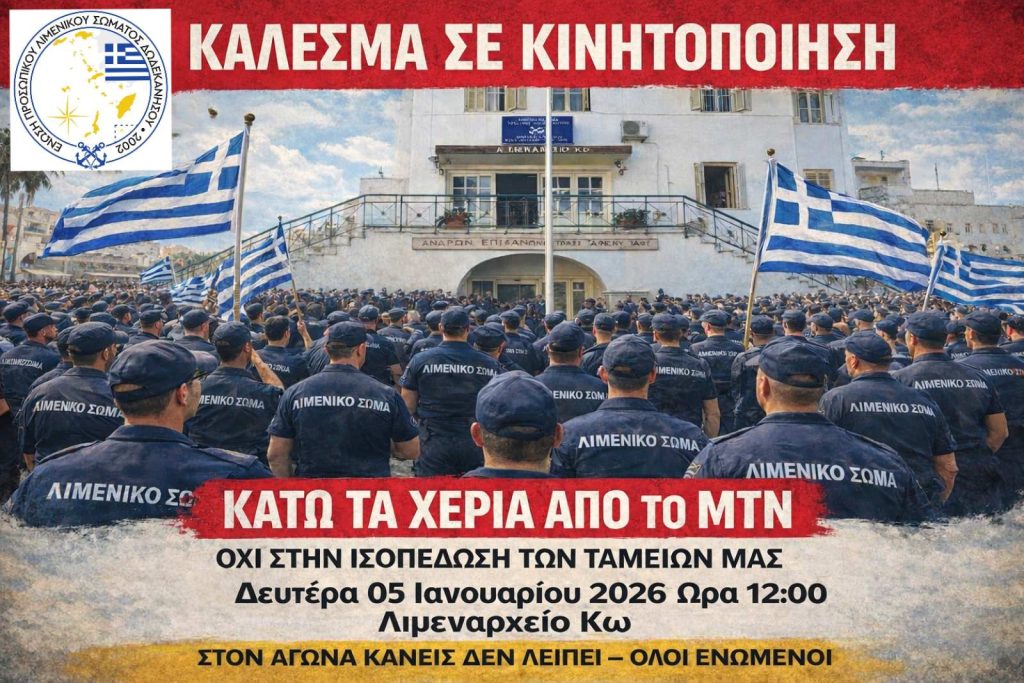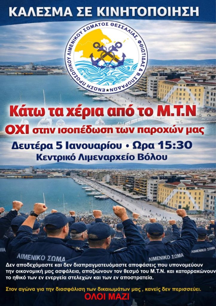 ΚΑΛΟΥΜΕ σε μαζική συμμετοχή στη συγκέντρωση διαμαρτυρίας, που θα πραγματοποιηθεί τη Δευτέρα 5 Ιανουαρίου και ώρα 07:00 στο Υπουργείο Ναυτιλίας & Νησιωτικής Πολιτικής!