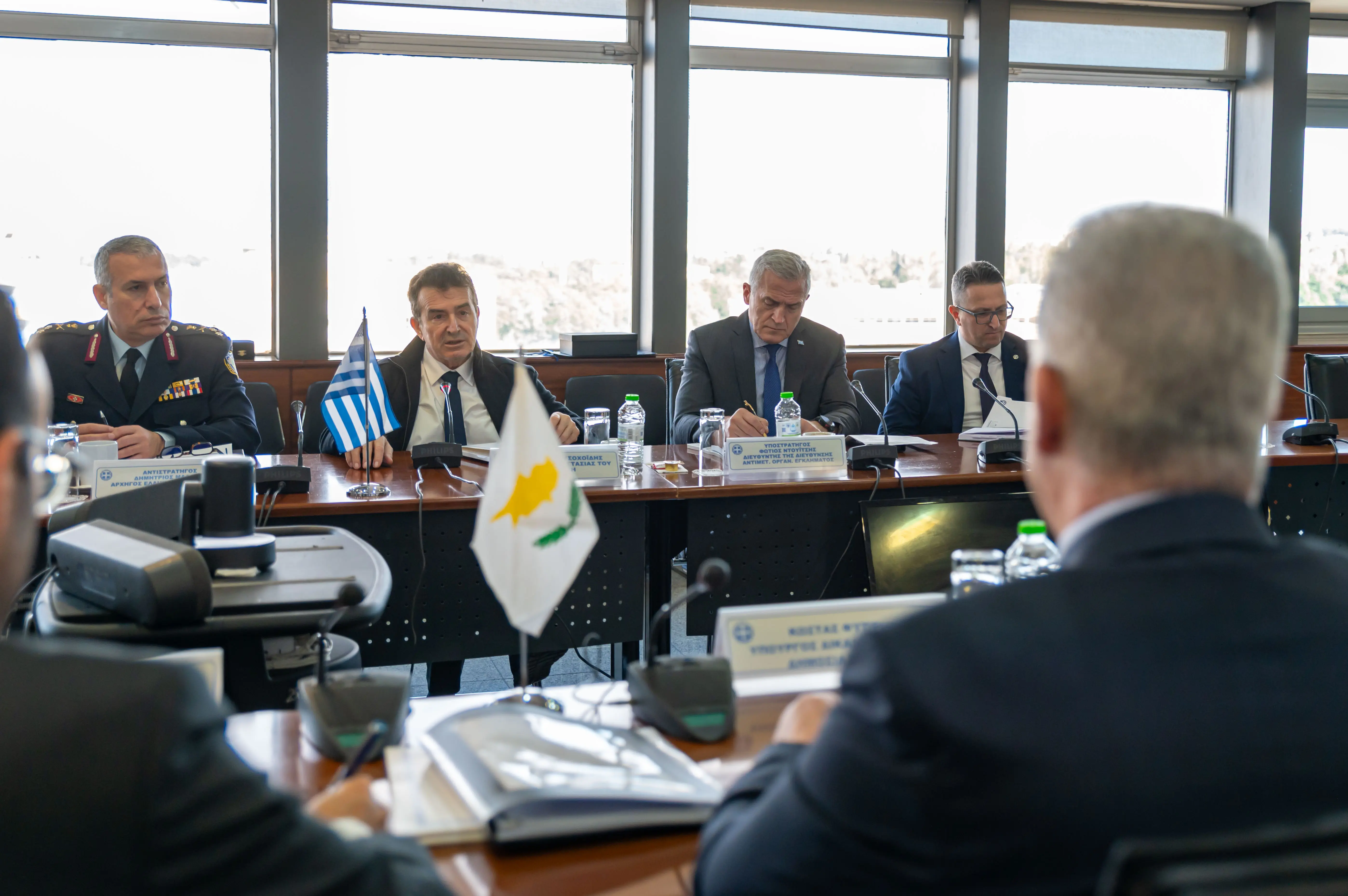 Στη συνάντηση συμμετείχαν, επίσης, ο Διευθυντής της Διεύθυνσης Διεθνούς Αστυνομικής Συνεργασίας, Ταξίαρχος Χρήστος Τσιτσιμπίκος, ο Αναπληρωτής Διευθυντής της Δ.Α.Ο.Ε, Αστυνομικός Διευθυντής Σπύρος Τσαρδάκας, ο πρέσβης της Κύπρου στην Ελλάδα, Σταύρος Αυγουστίδης, ο Επικεφαλής της Διεύθυνσης Δημόσιας Τάξης Κύπρου, Νίκος Χρυσοστόμου και στελέχη του υπουργείου Δημόσιας Τάξης της Κύπρου.